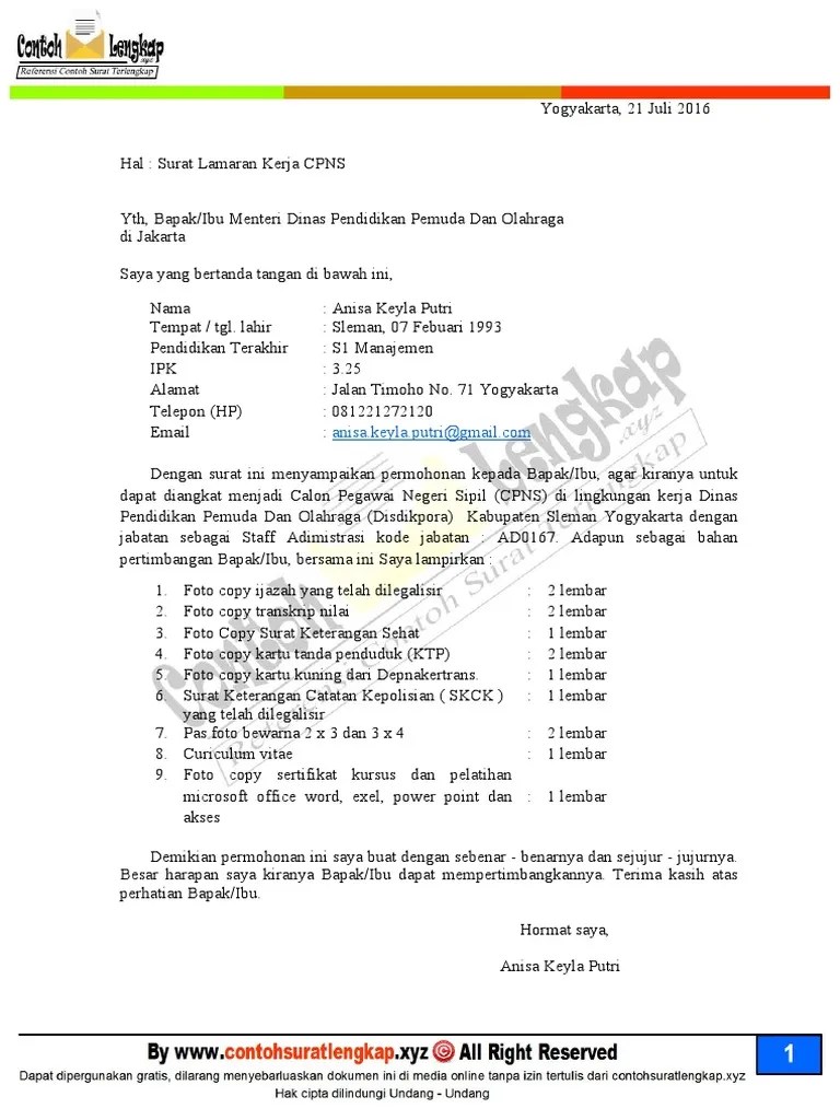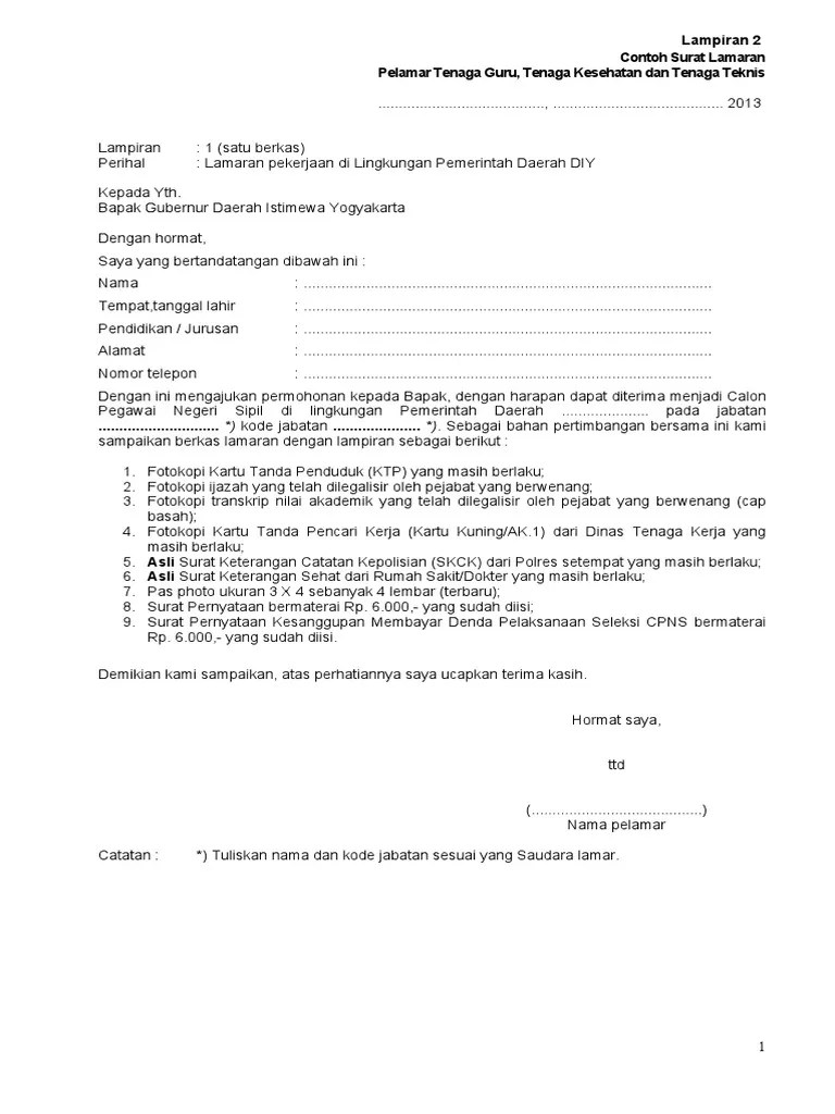 Scan asli surat lamaran (format lampiran iii), dengan ketentuan :. Berikut akan kami berikan surat pernyataan cpns dari salah satu instansi yang ada di jogja sebagai bahan refrensi anda untuk membuat atau . Contoh surat lamaran pekerjaan 4 (cpns) : Tidak berkedudukan sebagai cpns asn / asn, calon anggota . Parasamya, sleman, daerah istimewa yogyakarta 55511.